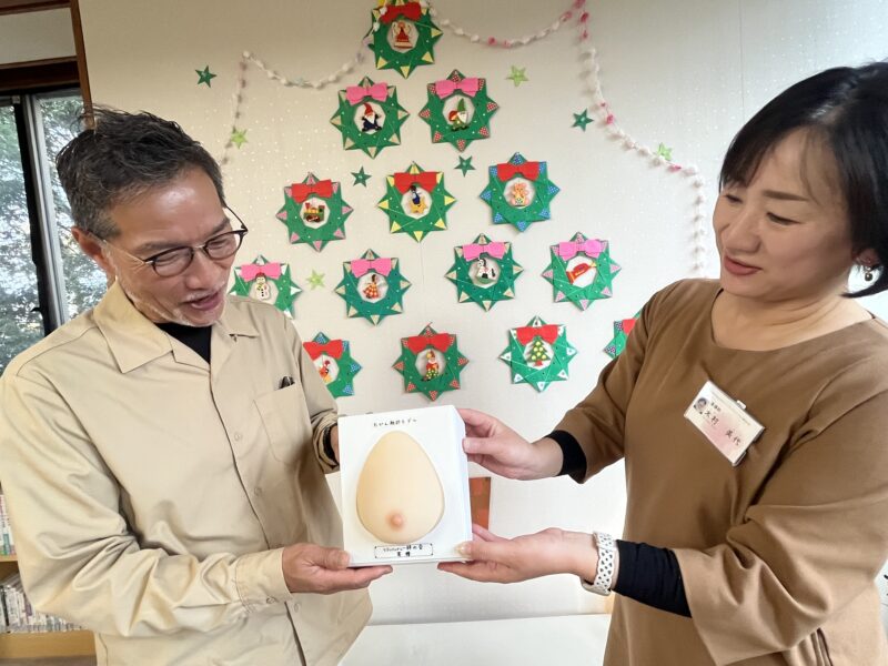 さらに、年に1度、個人様・企業様からの協賛金、寄附金、ワークショップ売上の一部を活用し、乳がん触診キットの寄贈も行っています。